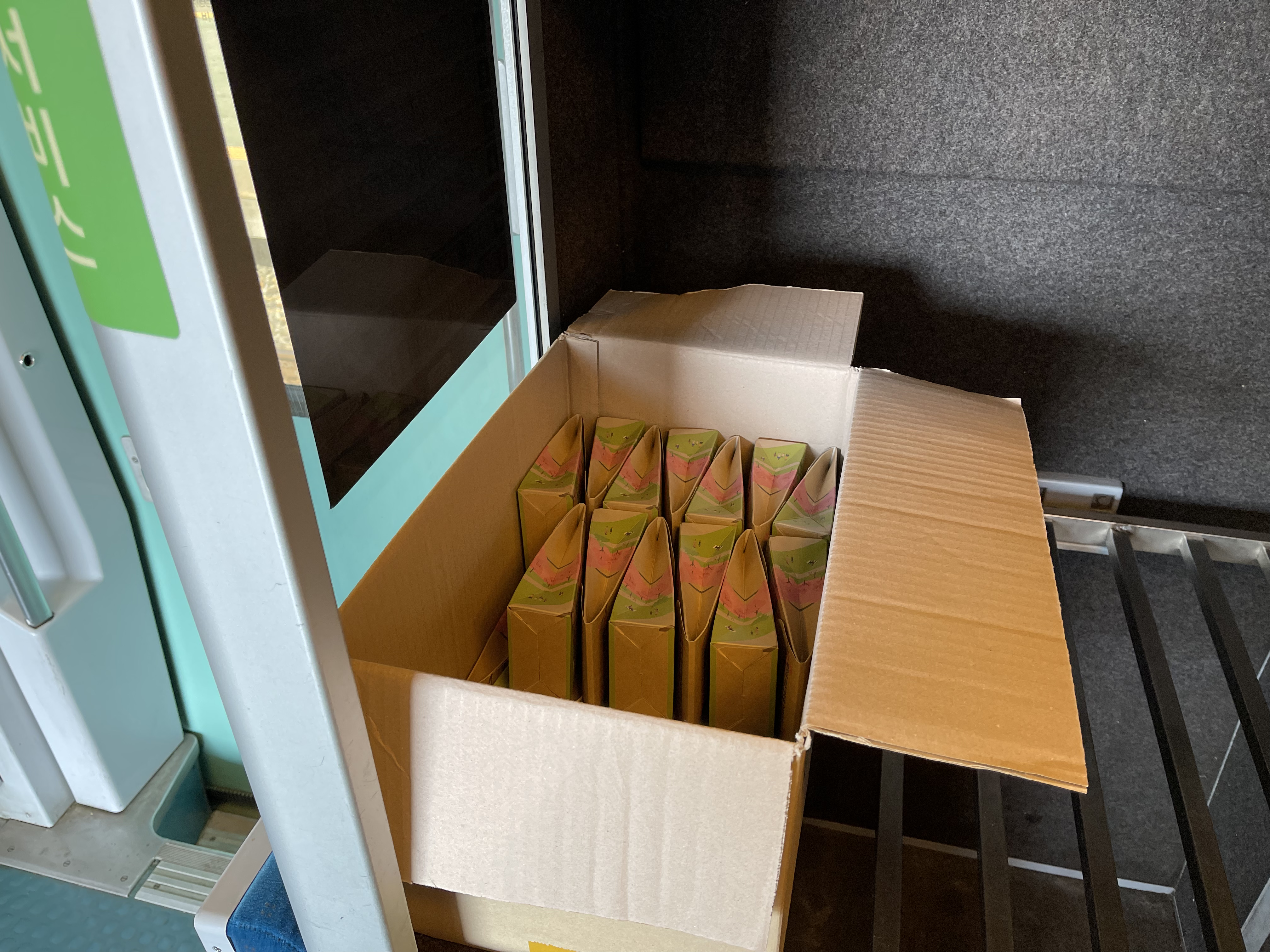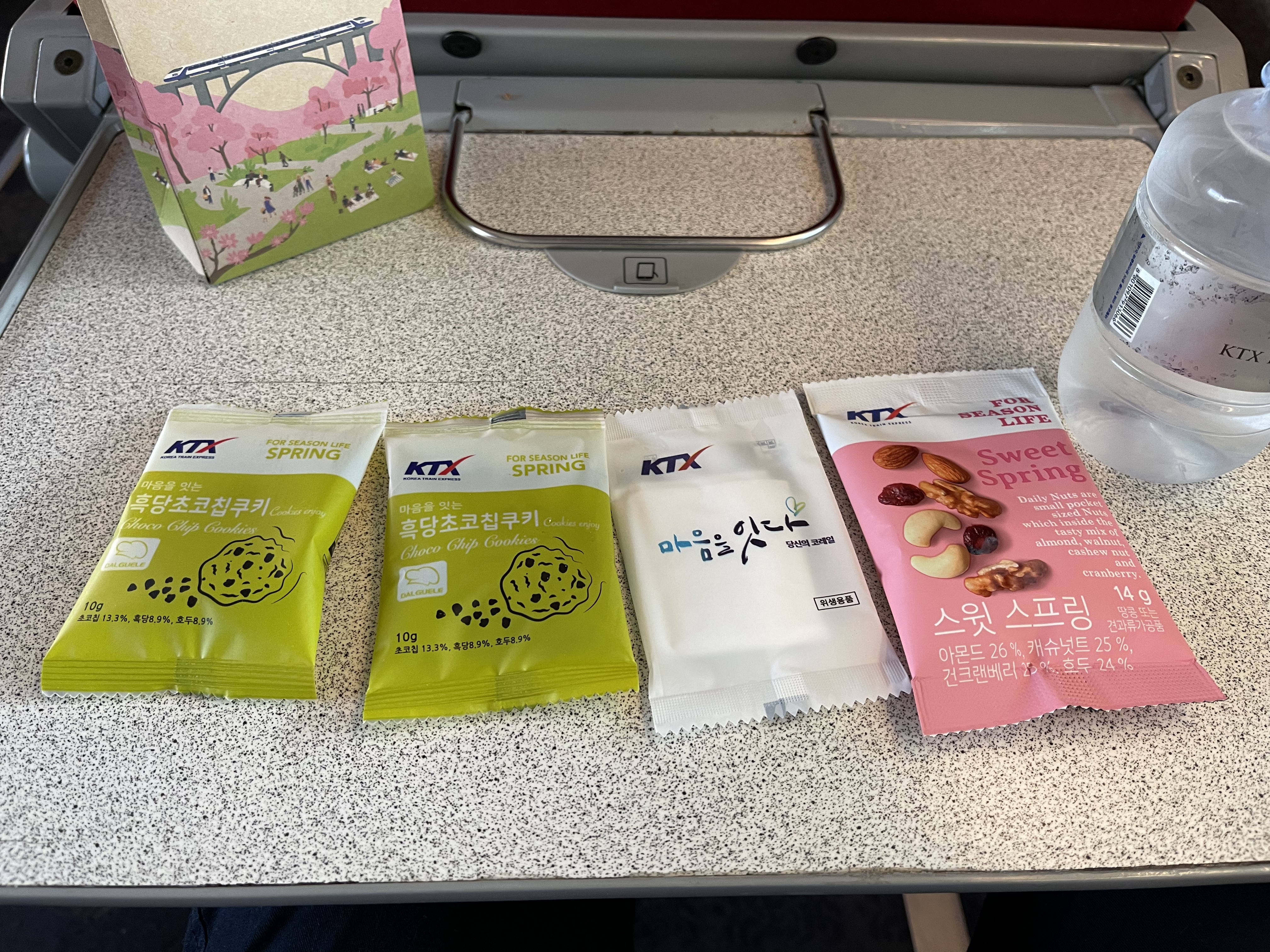 다만 열차 내 음식물 섭취가 금지되어 있어, 이 간식거리들은 내린 후 먹으라고 안내되어 있습니다.