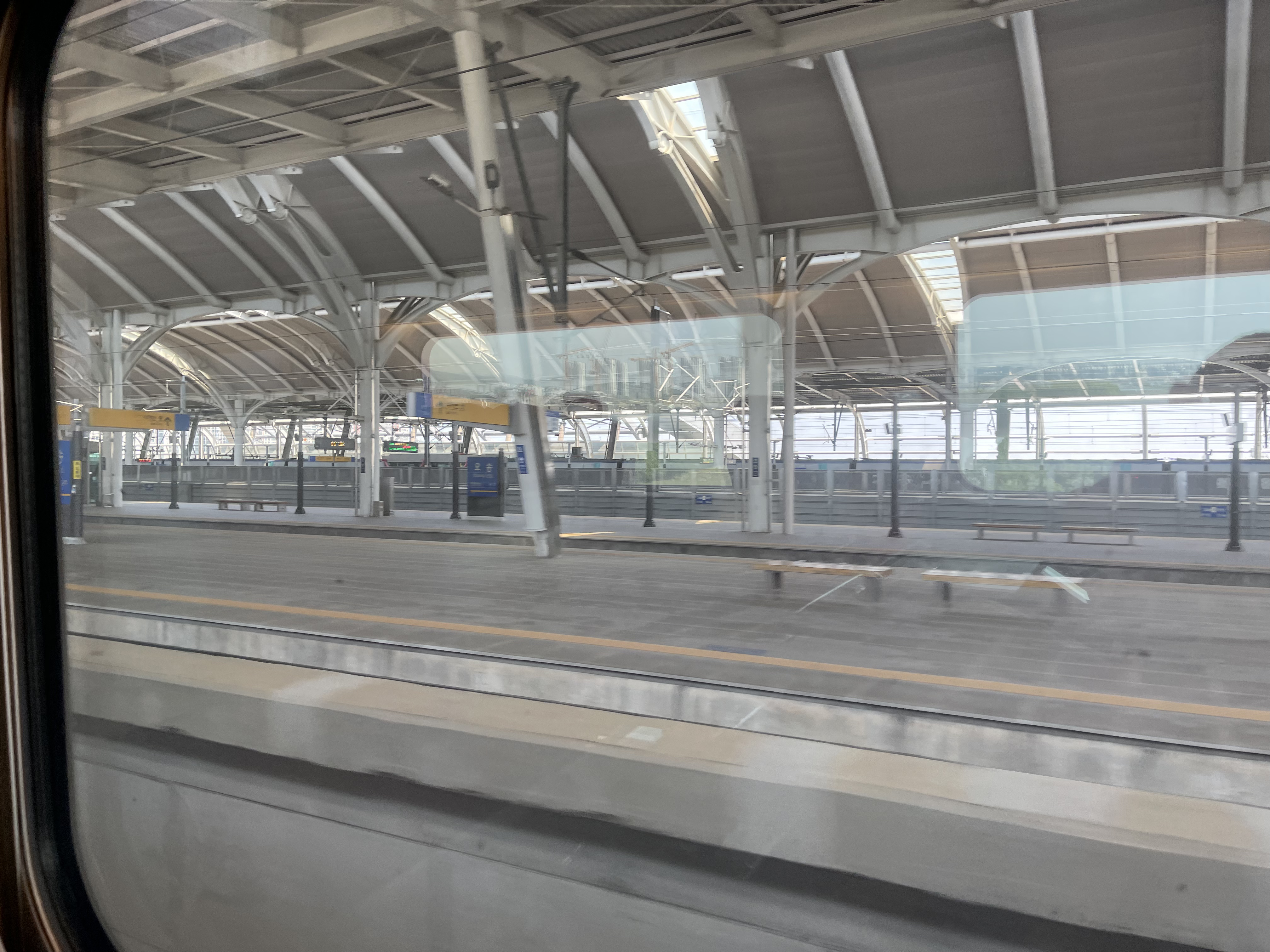 근데 이 호남본선이, 익산 이남으로부터는 호남고속선이랑 비슷한 경로로 주행하다 보니, 서대전 경유 KTX 열차 내에서 호남고속선을 시원하게 질주하는 다른 KTX 열차들을 보다 보니 은근히 답답하더군요 ㅋㅋ 내 열차는 장성역에 정차하기 위해 속도를 줄이고 있는데 옆 열차는 300kph로 달리고 있으니 😢