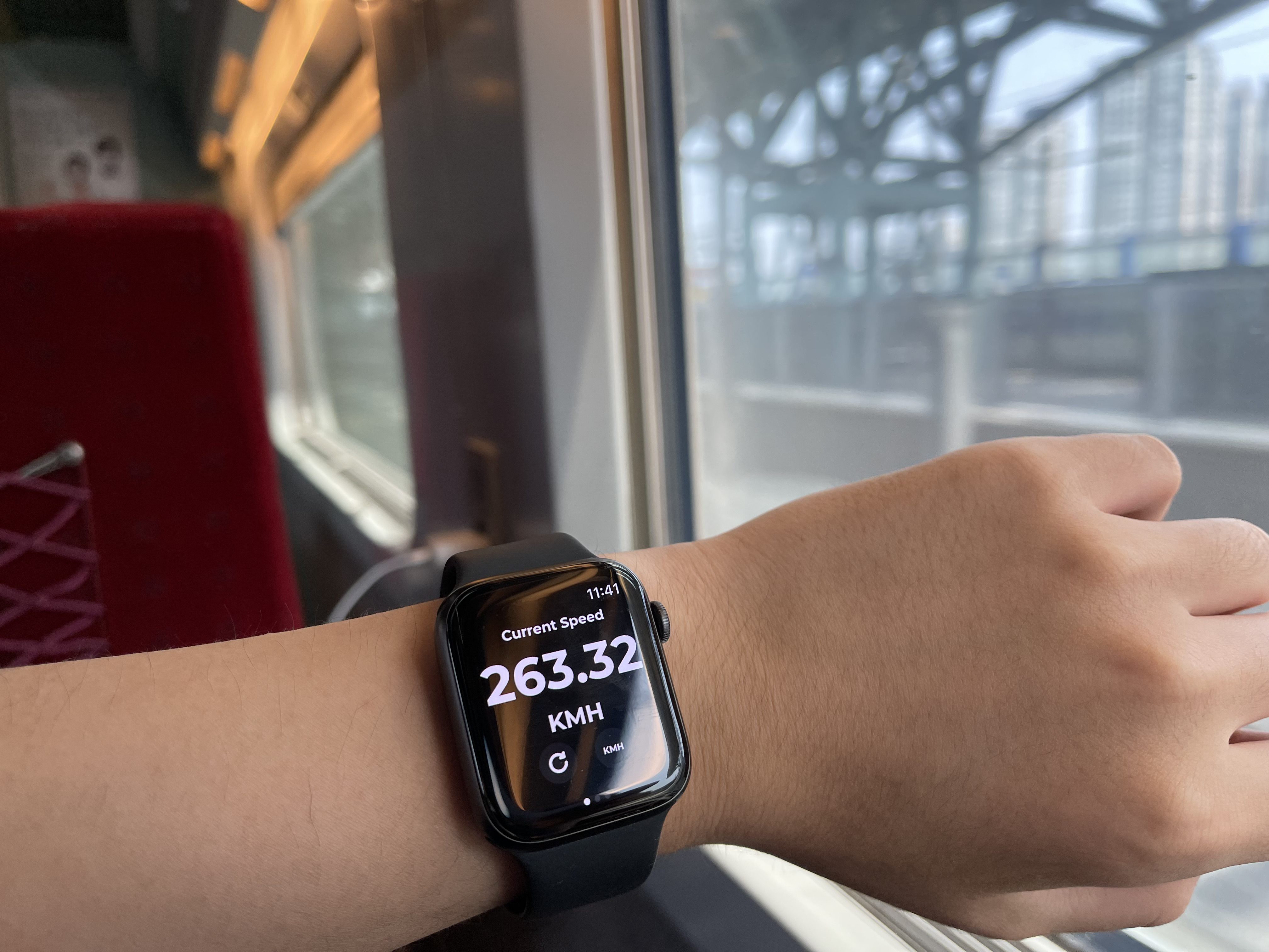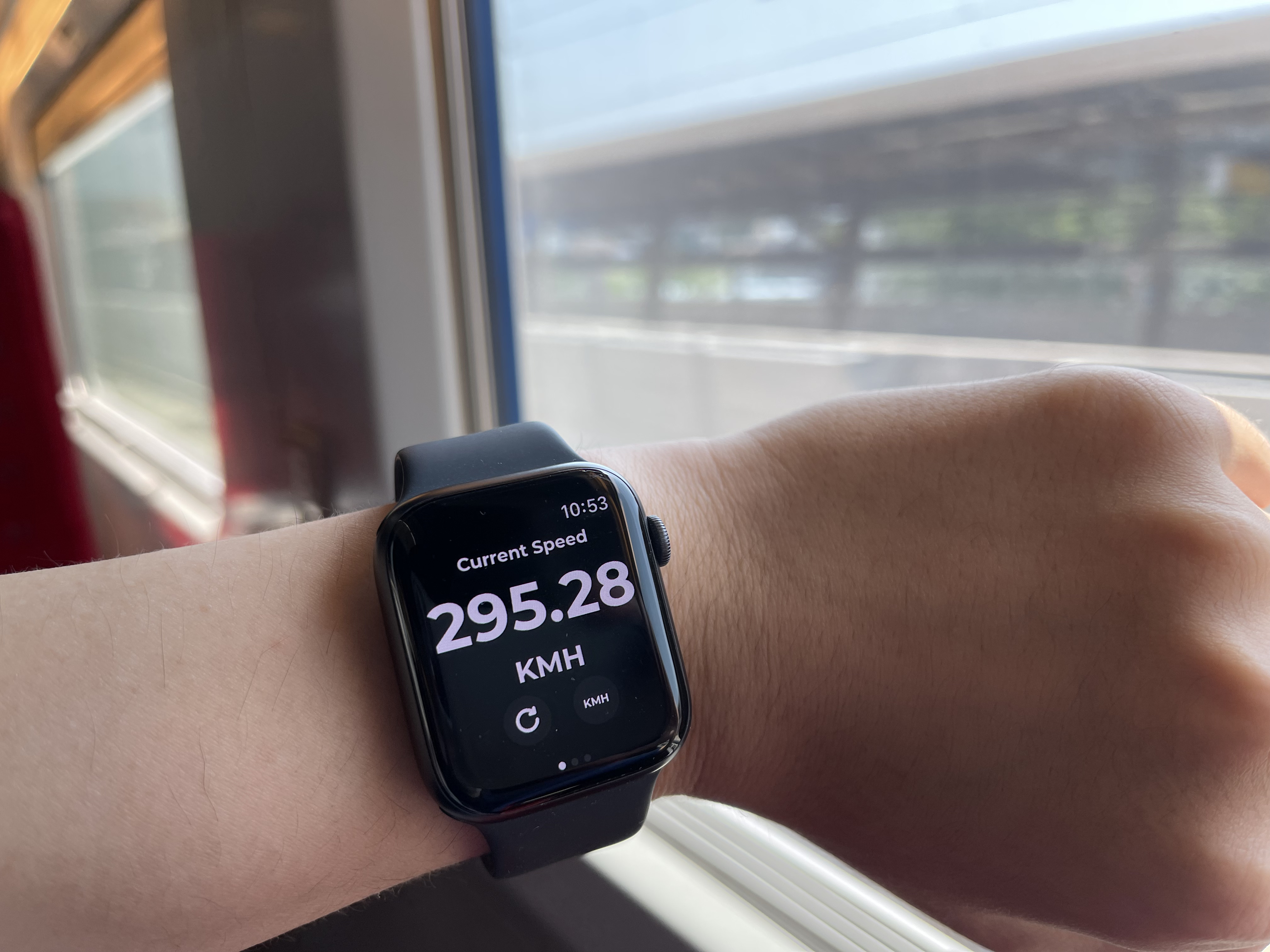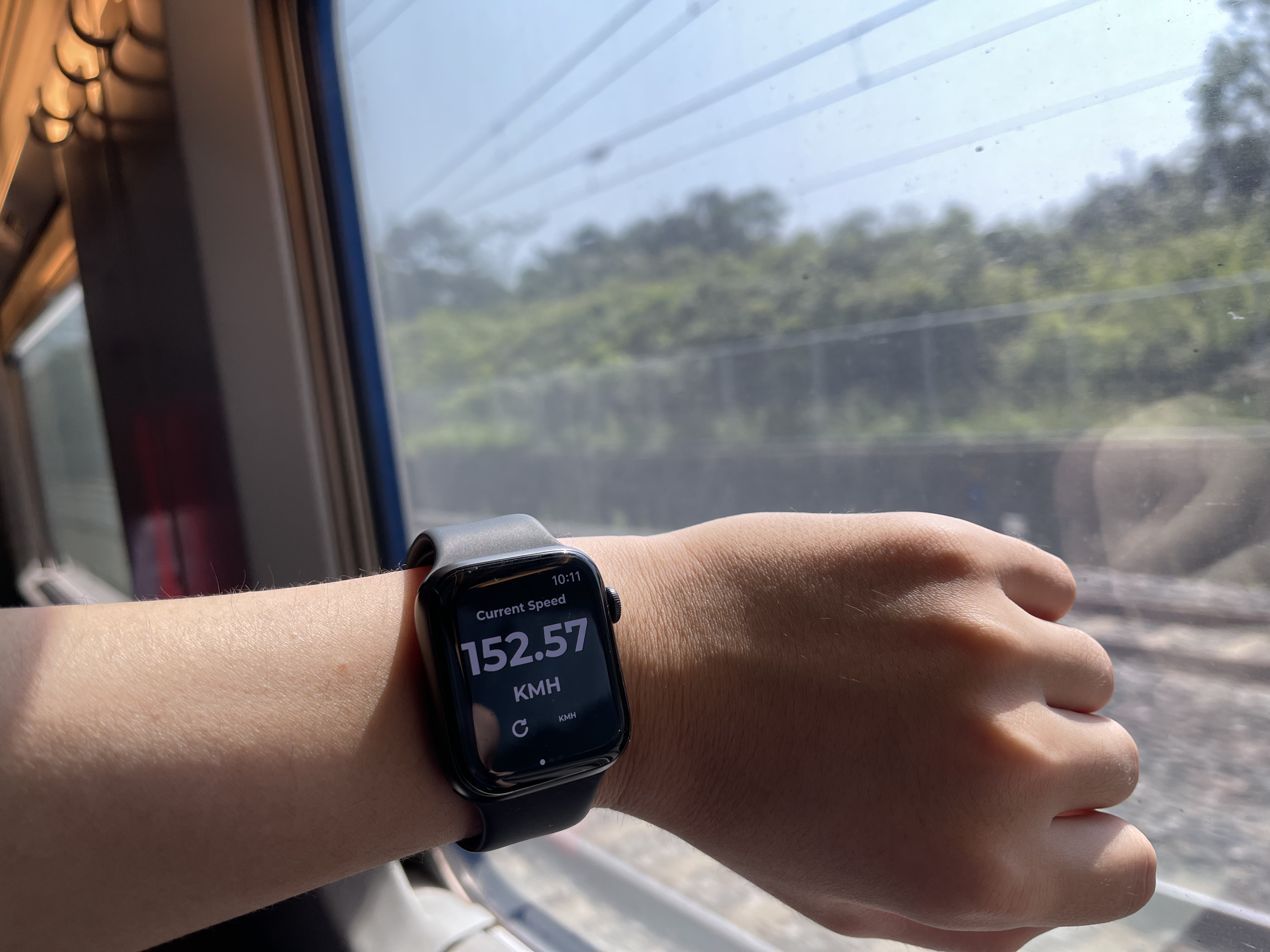(전날 기존선에서 160kph로 달리던 것을 생각하면..)