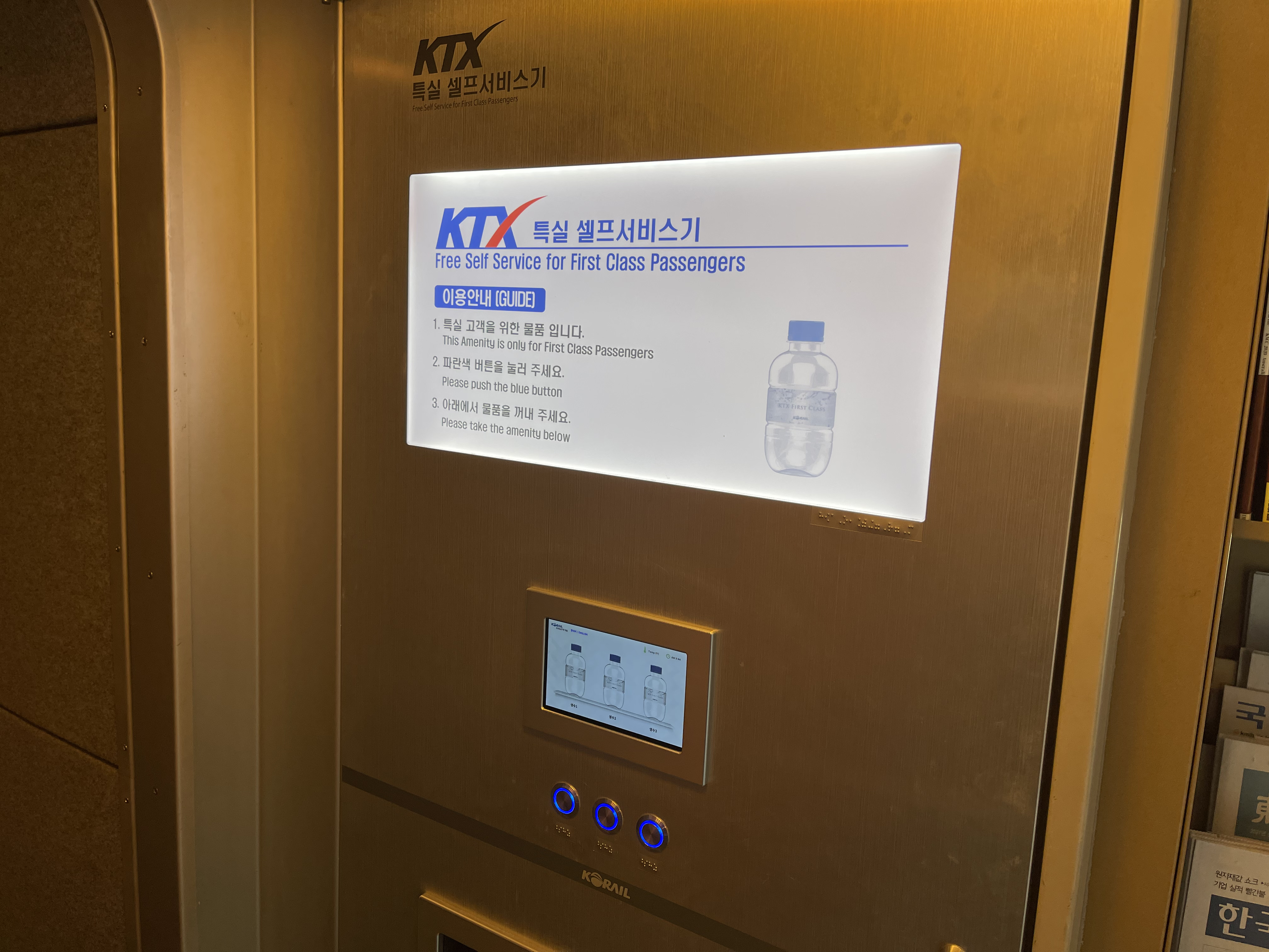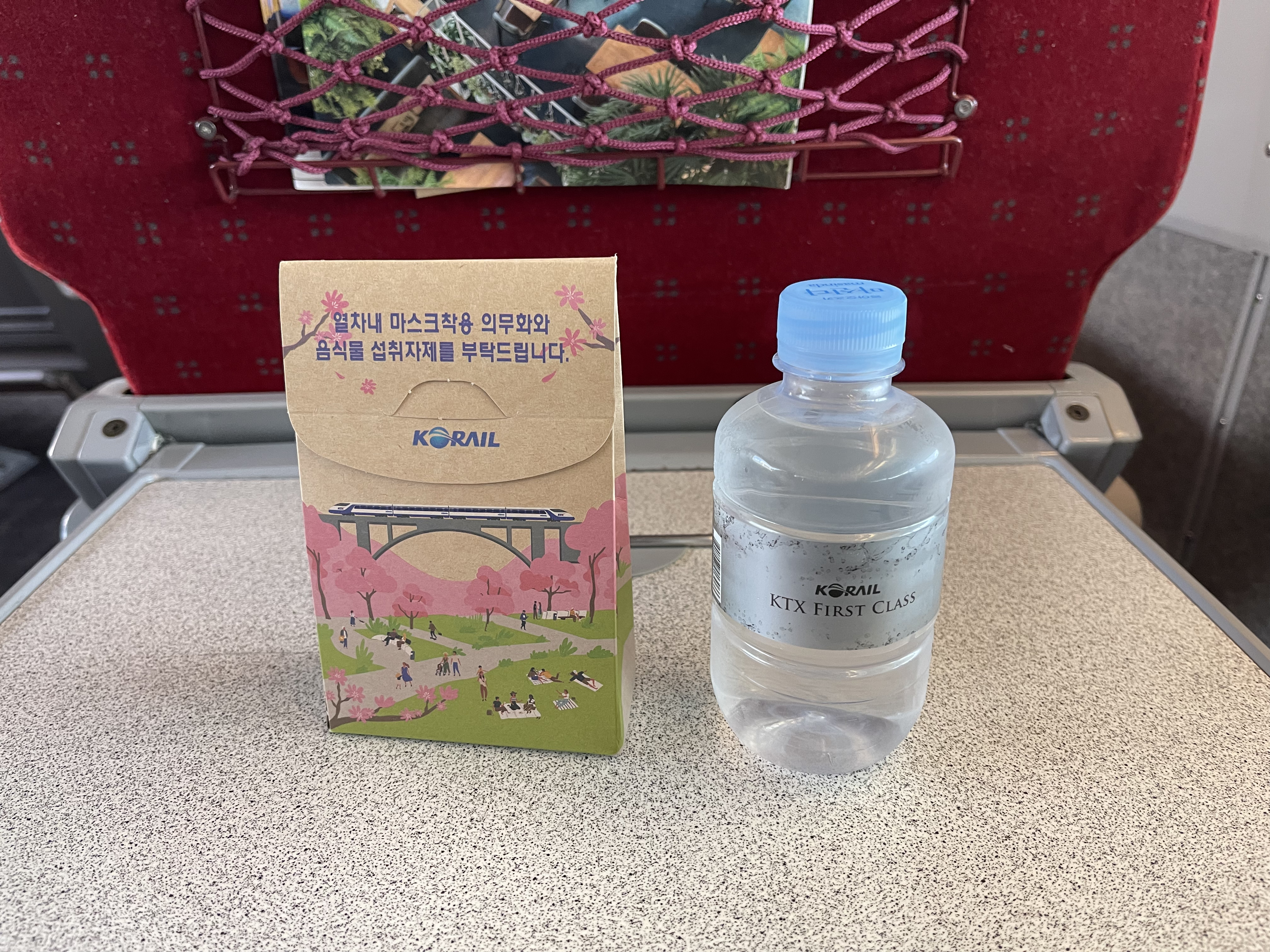 특실에 탔으니 특실 서비스 물품을 받아야겠죠.. 요새는 COVID-19의 영향으로 특실 서비스 물품을 복도에서 가져다 쓰는 방식으로 바뀌었습니다.