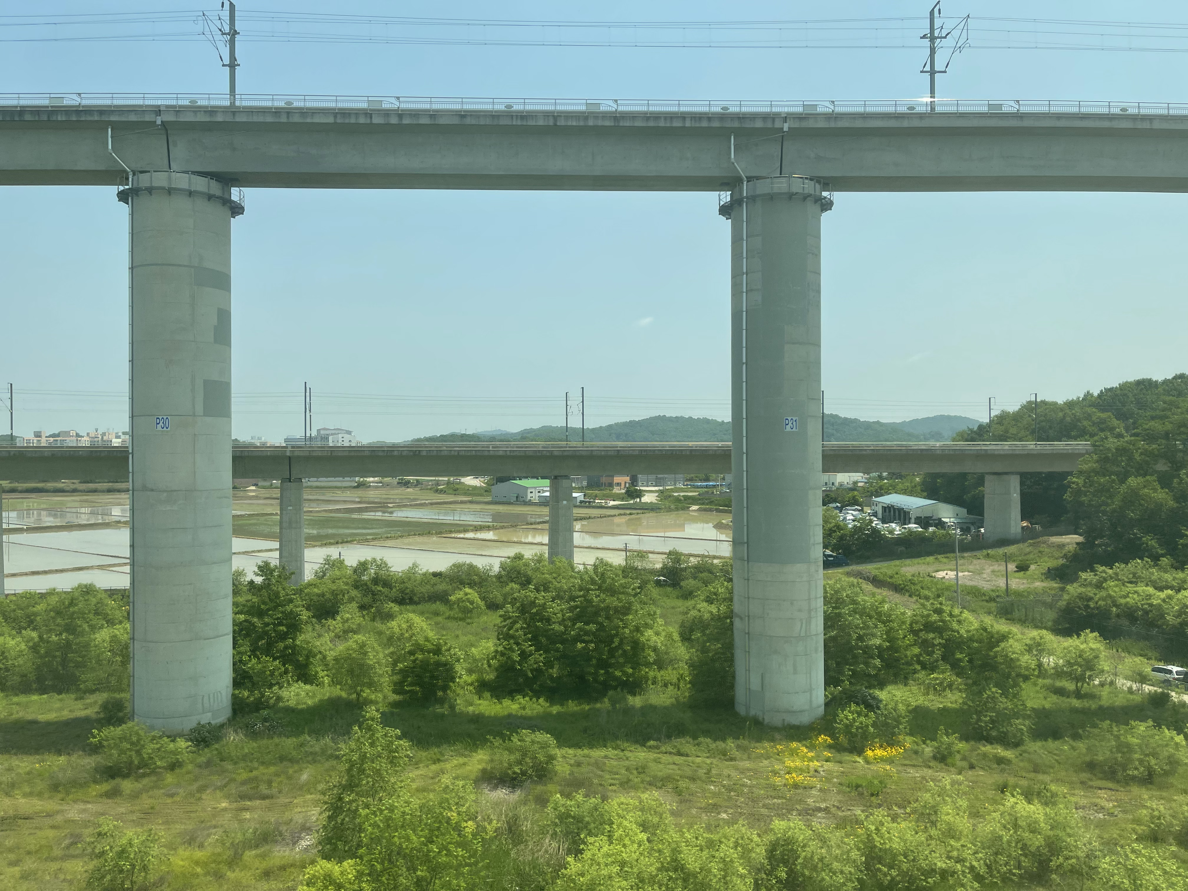 세종시 - 반석 인근을 주행하던 열차는 속도를 낮추기 시작하더니, 고가의 교각이 보이기 시작합니다. 그말은 이제 호남고속선이 끝날때가 되었다는 말이죠.
